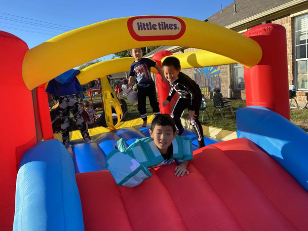 天翼学校作为一所在美国的双语学校,在传播东方文化的同时,也会加入西方文化的学习。秋天是一个丰收的季节,我校为大家准备了party来庆祝这一丰收时刻。在本次活动中我们为大家准备了多种游戏,充气游乐场,希望幼儿可以在活动中提高自身的综合能力。
