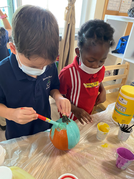 在这一丰收时刻,我校组织幼儿对南瓜进行了装扮。