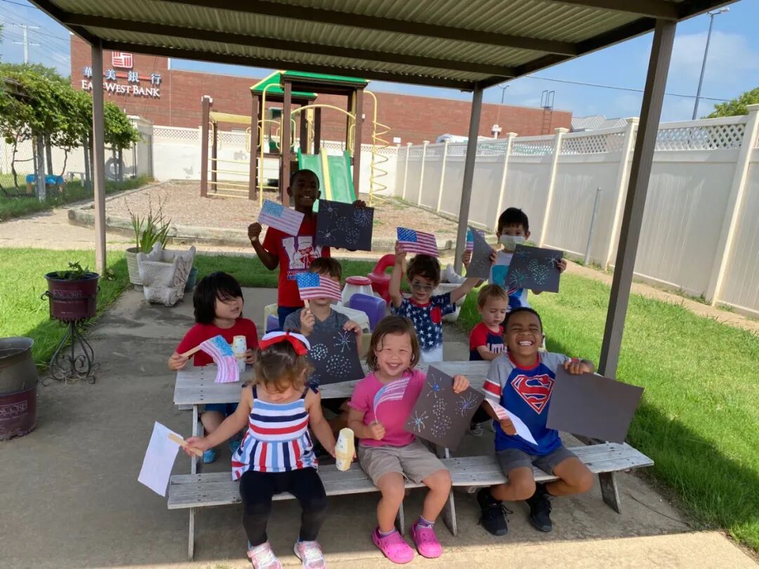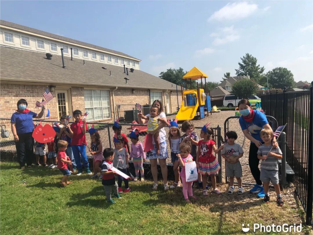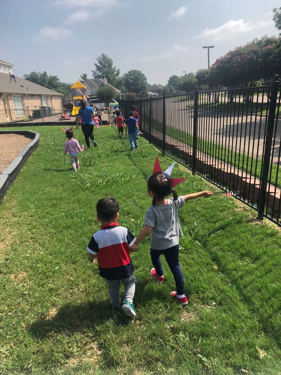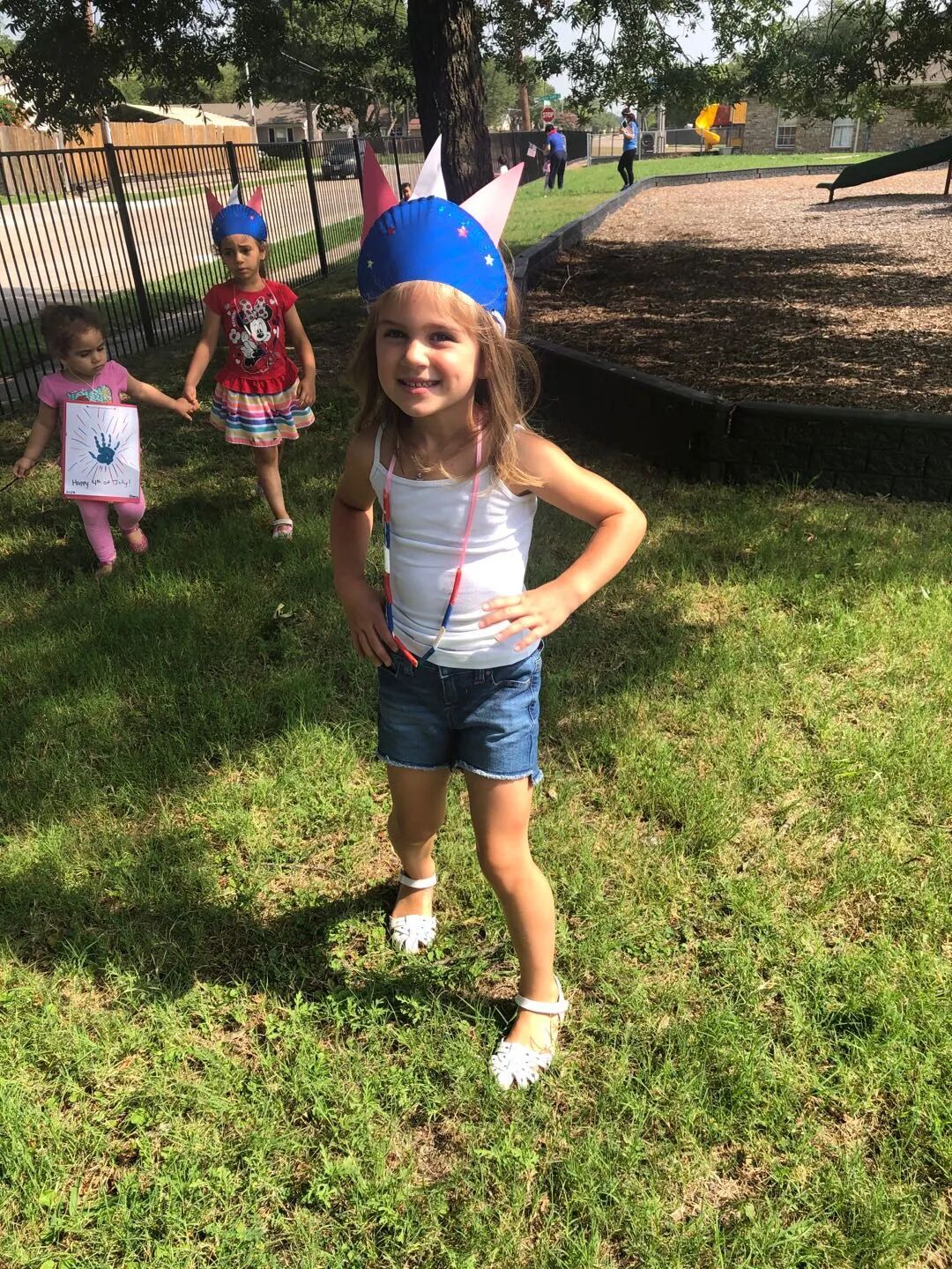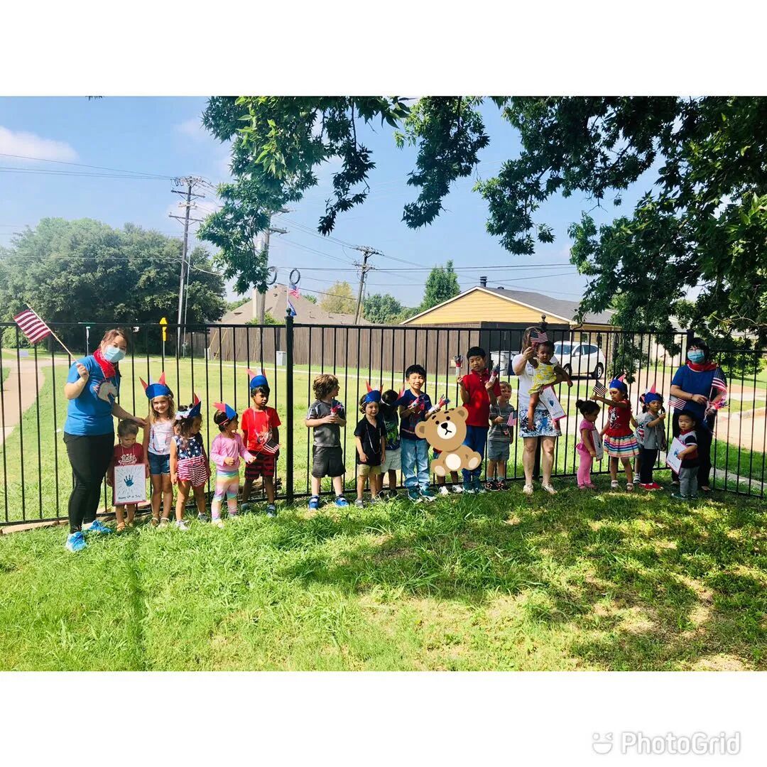 接着我们在保证小朋友们安全的情况下,举行了小小的独立日游行,和孩子们一同庆祝独立日。